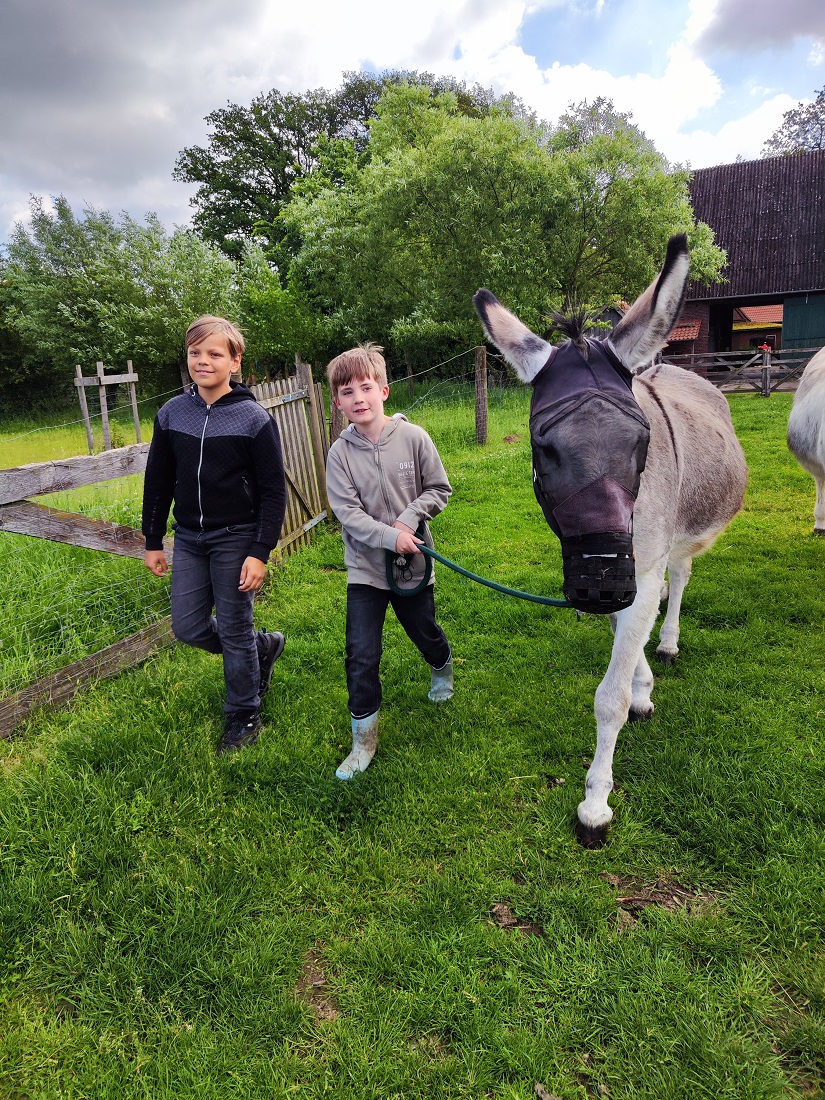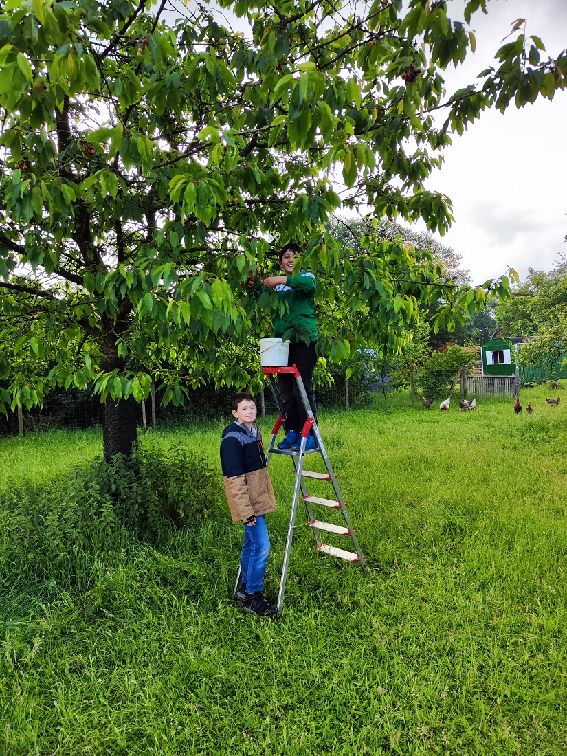 Besonders gut gefiel es ihnen, die leckeren, selbst gepflückten Kirschen zu verspeisen, mit den Ziegen Kunststücke einzuüben, die Esel auf die Weide zu bringen und deren Stall zu misten sowie Holz zu hacken und das zahme Huhn "Lotte" zu streicheln.