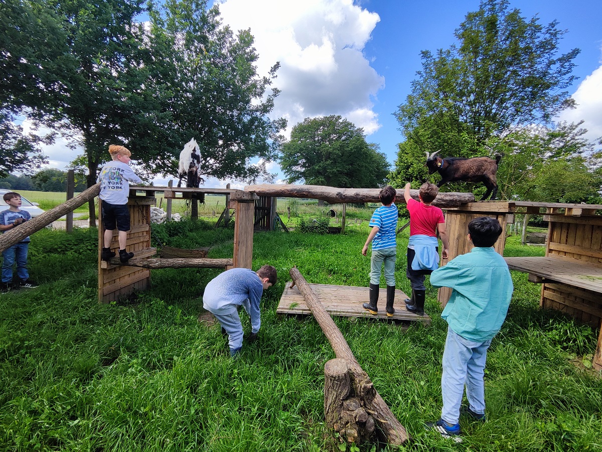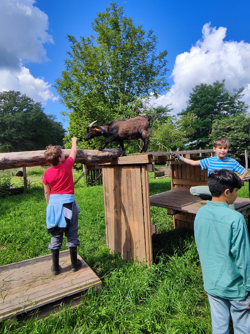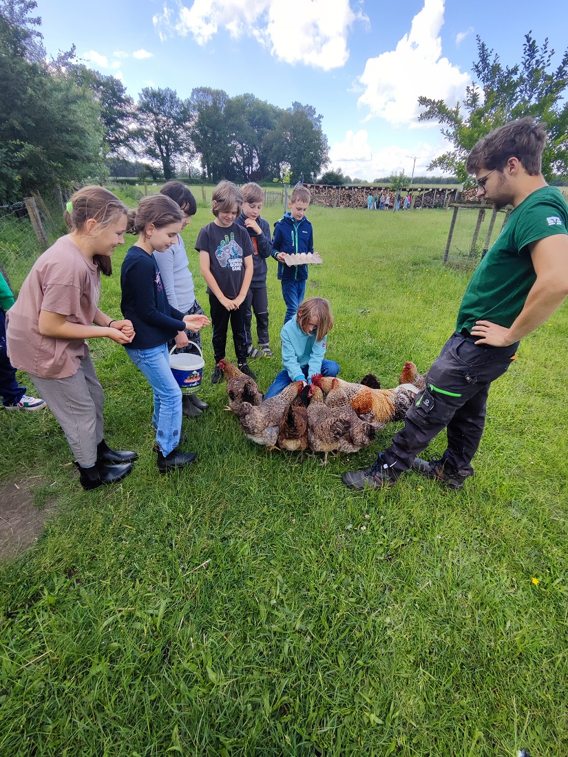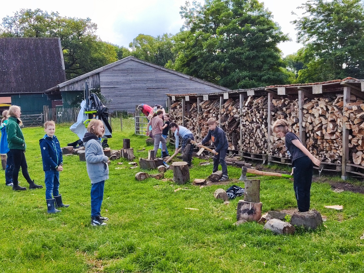 Hier konnten die Kinder in geführten Kleingruppen den Hof erkunden, die Tiere versorgen und füttern, Holz hacken, Salat einpflanzen und vieles mehr.