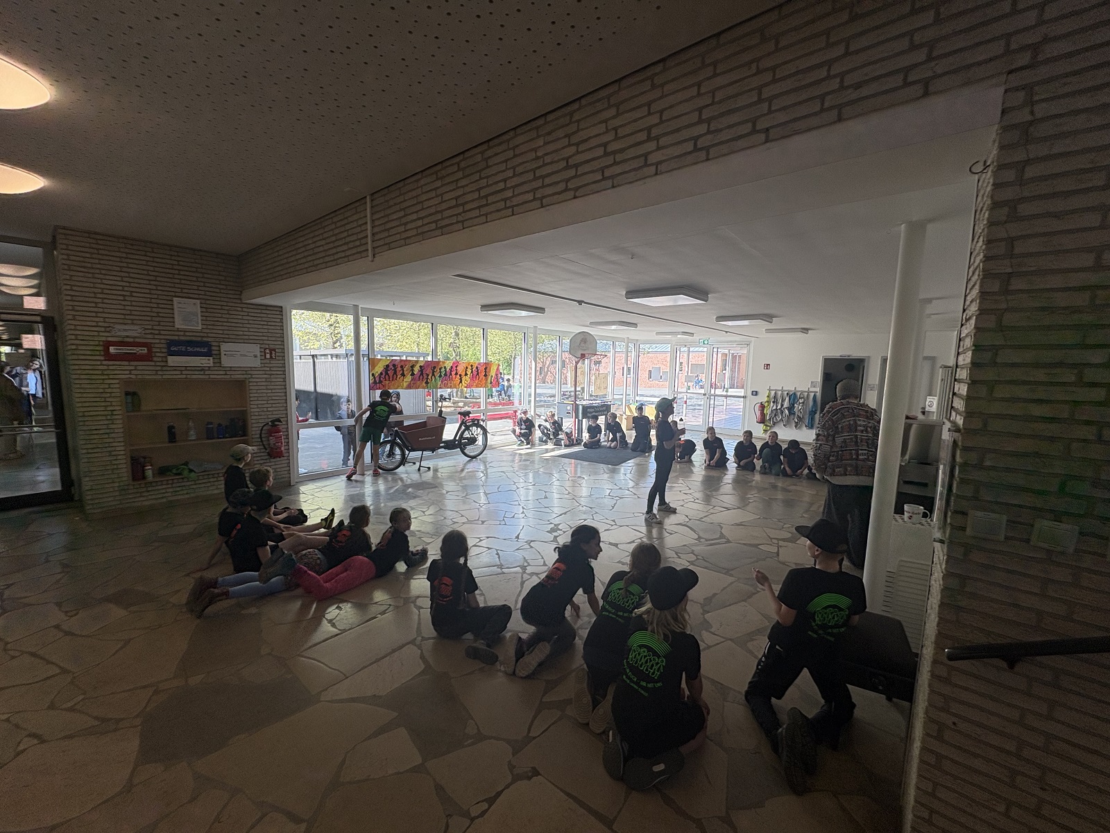 Was ich blöd fand, dass wir am ersten Tag in einem so kleinen Raum getanzt haben. Zum Glück konnten wir dann am Dienstag in die Aula. Mir bleibt in Erinnerung: Unser Tanz und die Aufführung. Ich war überrascht, dass wir 90 Minuten pro Tag getanzt haben. Trotzdem hat es mir Spaß gemacht.
