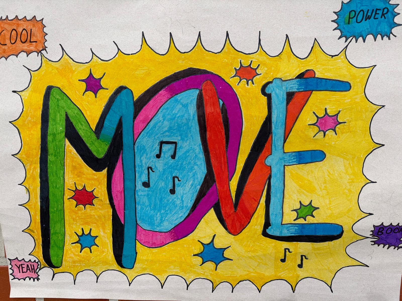 In der restlichen Zeit, wo wir nicht getanzt haben, haben wir uns mit Graffiti beschäftigt und wir haben die Bühnendeko gemacht. Move in School war toll.