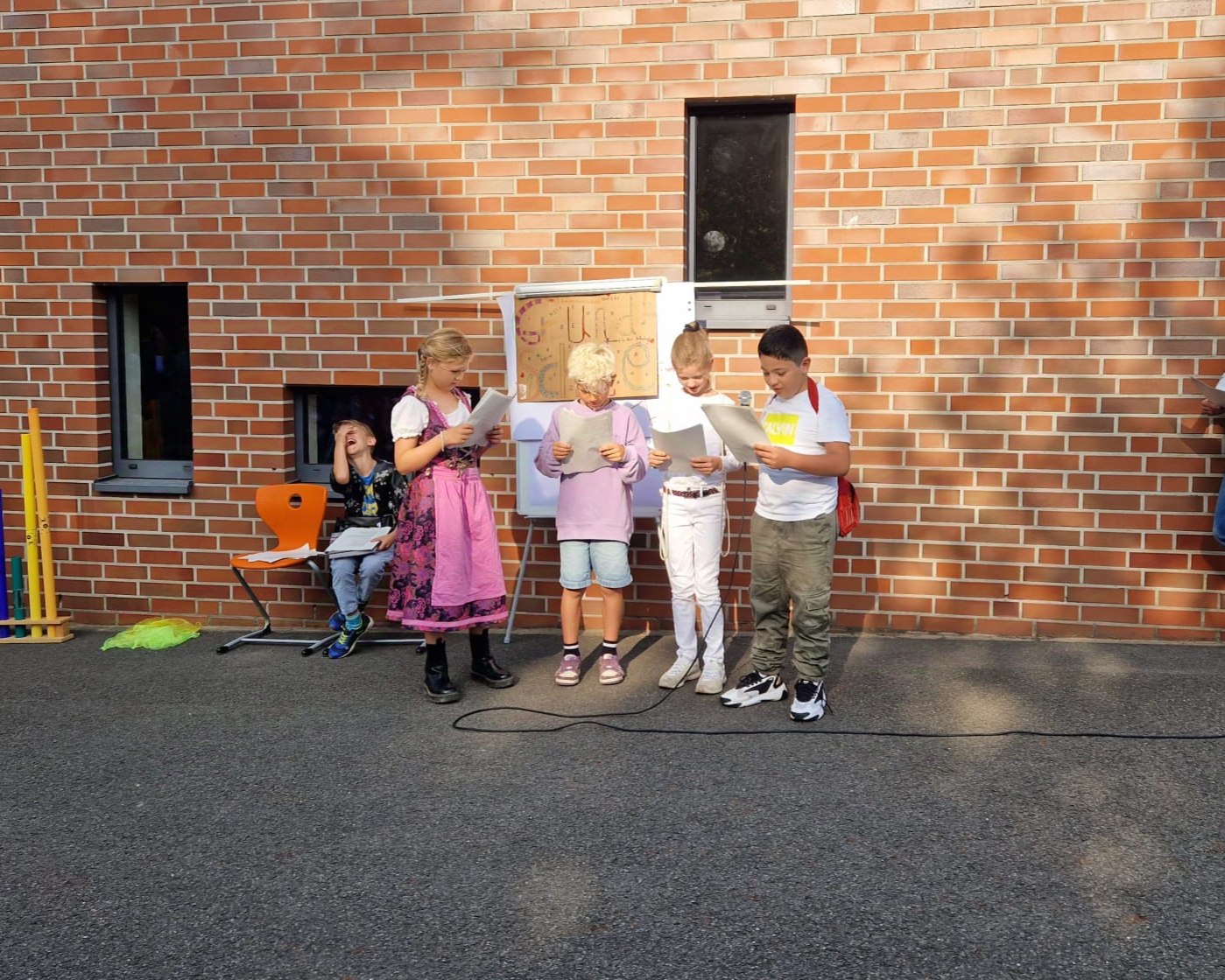 Nach Begrüßung durch die Schulleitung sorgten die beiden zweiten Klassen mit einem Lied für musikalische Unterhaltung. Die vierten Klassen begeisterten mit einem Theaterstück.