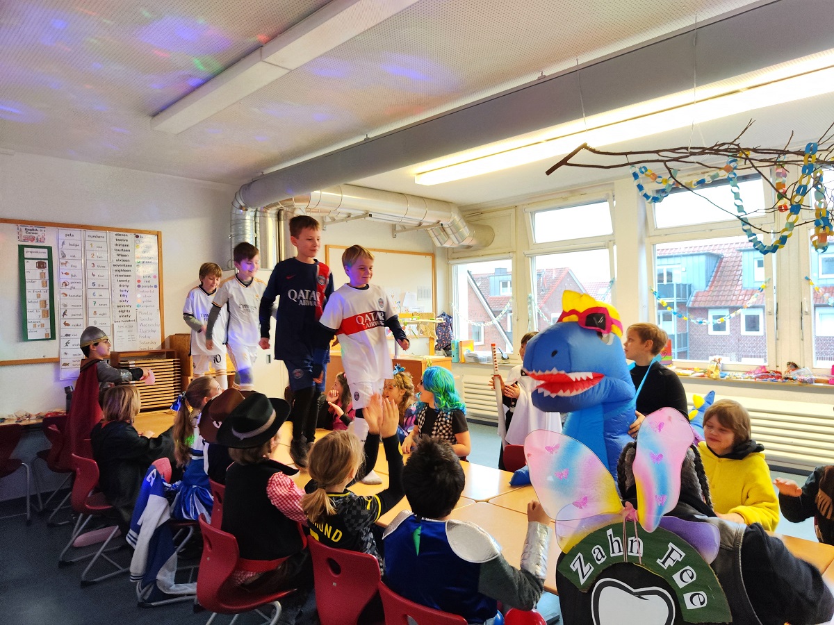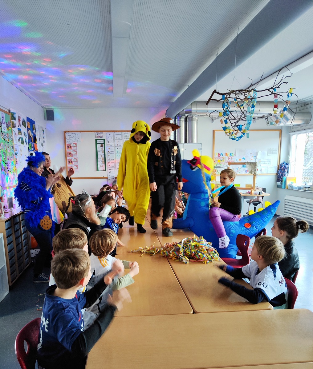 In den bunt geschmückten Klassenräumen wurde gemeinsam gefrühstückt, getanzt, gespielt, Kostüme präsentiert und gefeiert.
