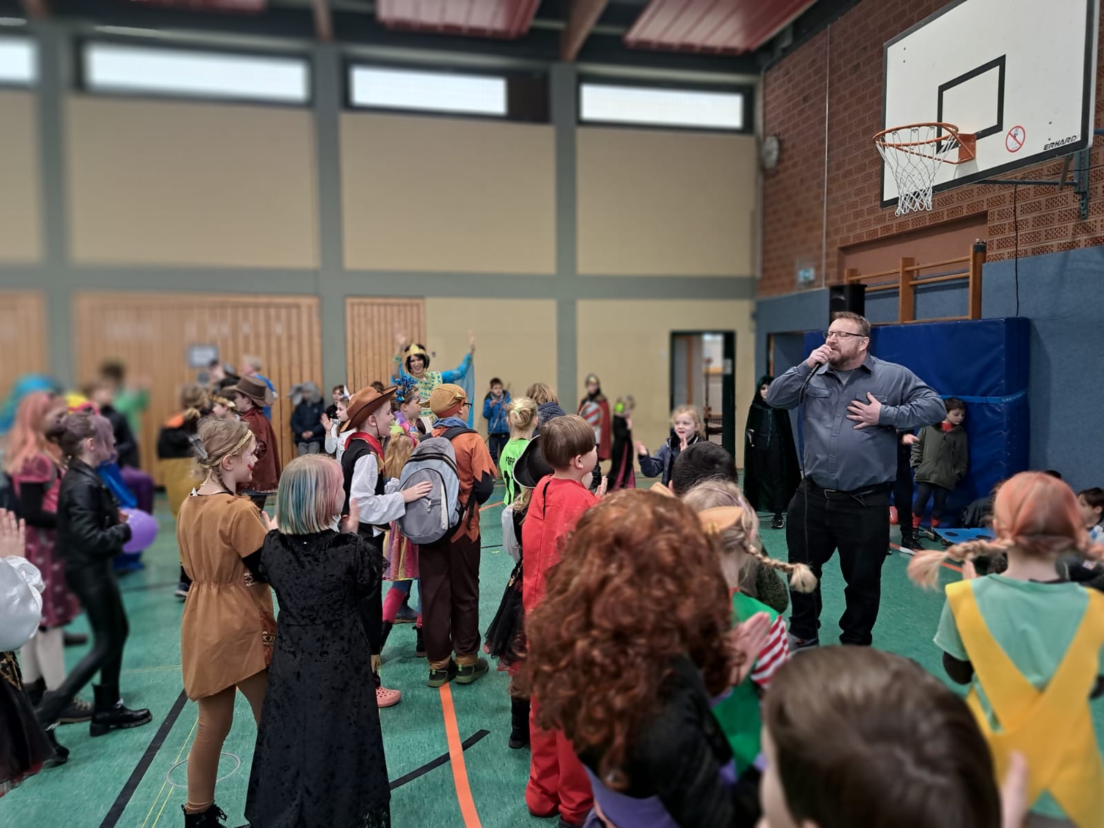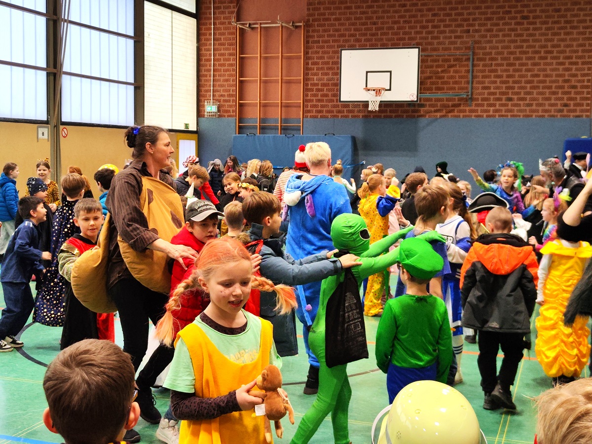 Am gestrigen Donnerstag waren in der Brüder-Grimm-Schule weder Schüler/innen noch Lehrerinnen oder sonstige Mitarbeiter/innen zu sehen. Stattdessen tanzten Prinzessinnen, Piraten, Dinosaurier, Clowns und Tiere aller Art durch das Schulgebäude.