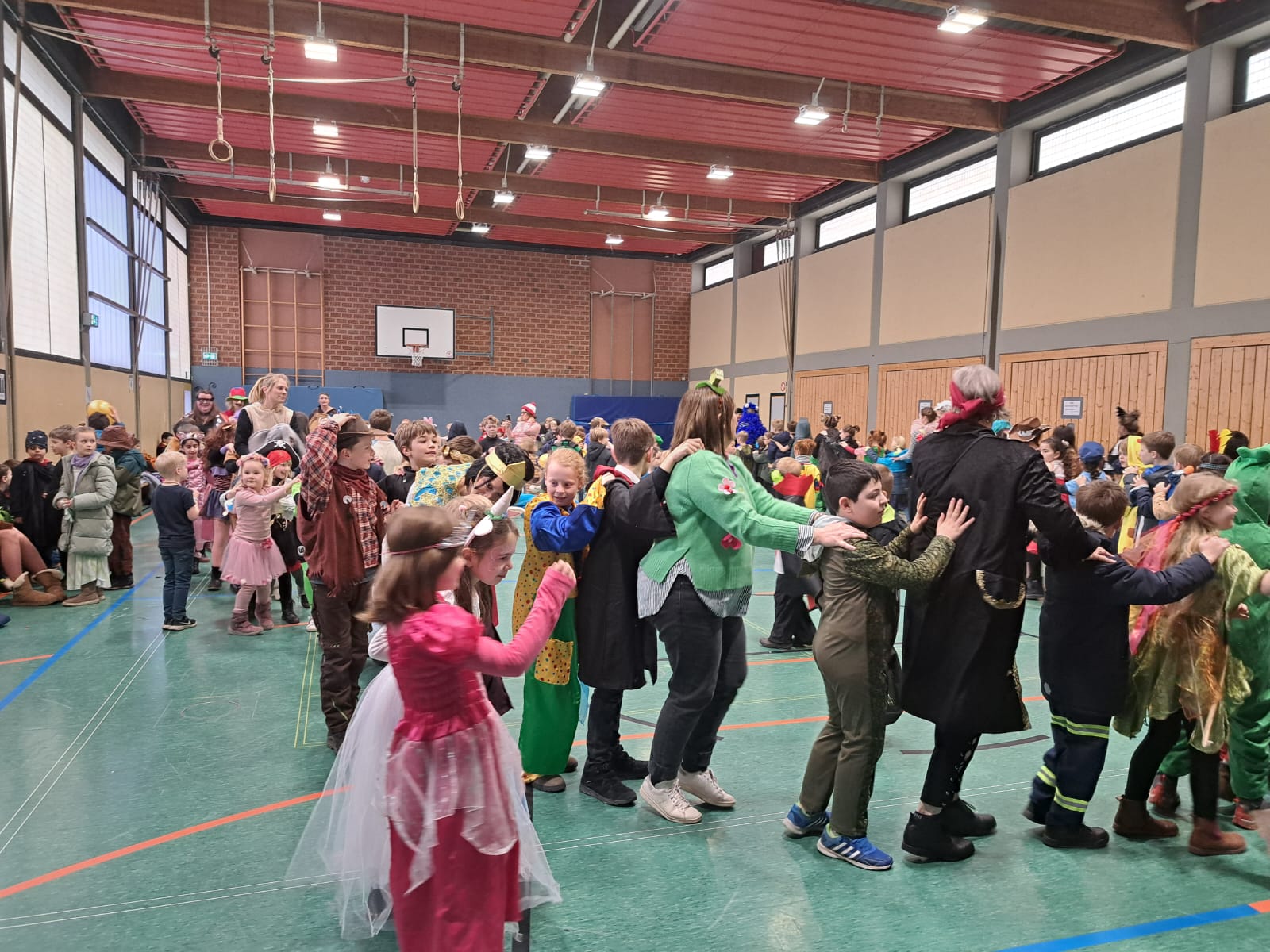 Der Umzug endete auch in diesem Jahr in unserer Turnhalle. Zu lauter Karnevalsmusik wurde gefeiert und ausgelassen getanzt.