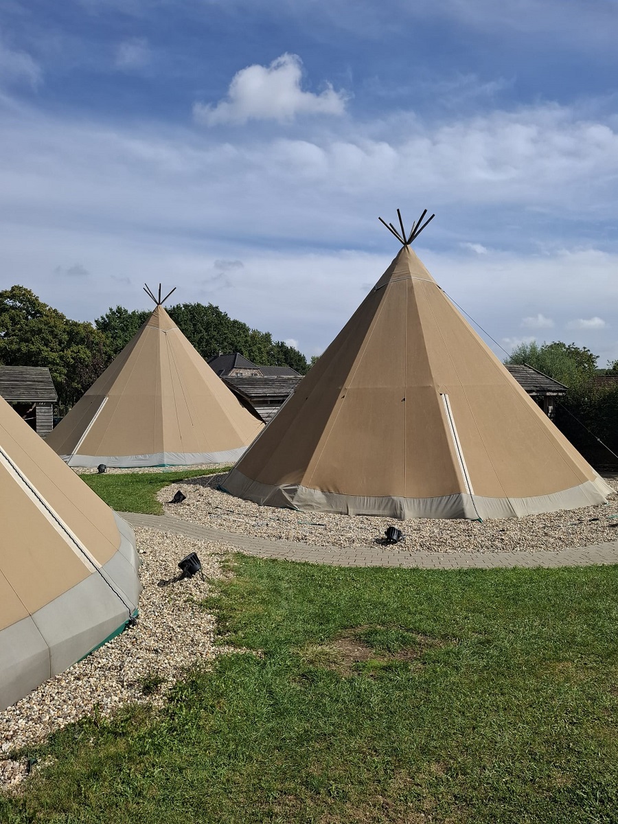 Als das Gepäck im Bus verstaut ist, fahren wir endlich los. Im Bus hören wir Musik, singen dazu und quatschen. Als wir ankommen, kriegen wir eine kleine Einweisung. Danach richten wir unsere Tippis ein, in denen wir schlafen. Carla und ich erkunden den Hof. Bei den Plastikpferden treffen wir Nora und Marie. Zusammen gehen wir zum Mittagessen. Es gibt Nudeln und Reis mit Pilz oder Tomatensauce und Salat. Als wir fertig gegessen haben, hüpfen wir ein bisschen auf den Hüpfkissen und dem Wasserdonut. Da ruft Frau Hohl uns zum Reiten.
