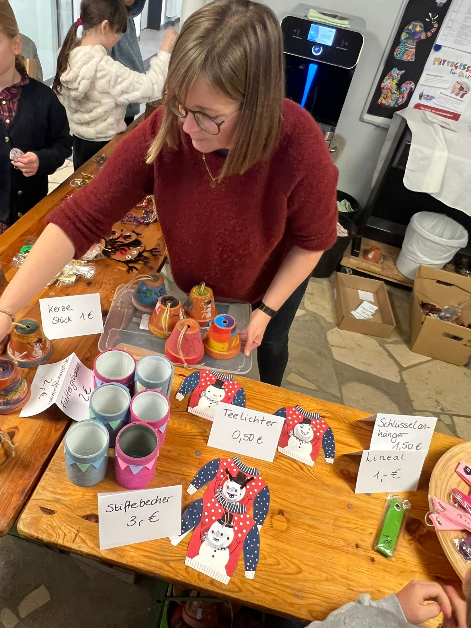 Neben dem Dekotag hatten die Kinder die Möglichkeit am Adventsbasar einzukaufen. Dort gab es dieses Jahr wieder eine breite Auswahl an selbsthergestellten Dingen. Socken, Schlüsselanhänger, Kartenhalter und Futterglocken waren ein kleiner Teil des Angebots.