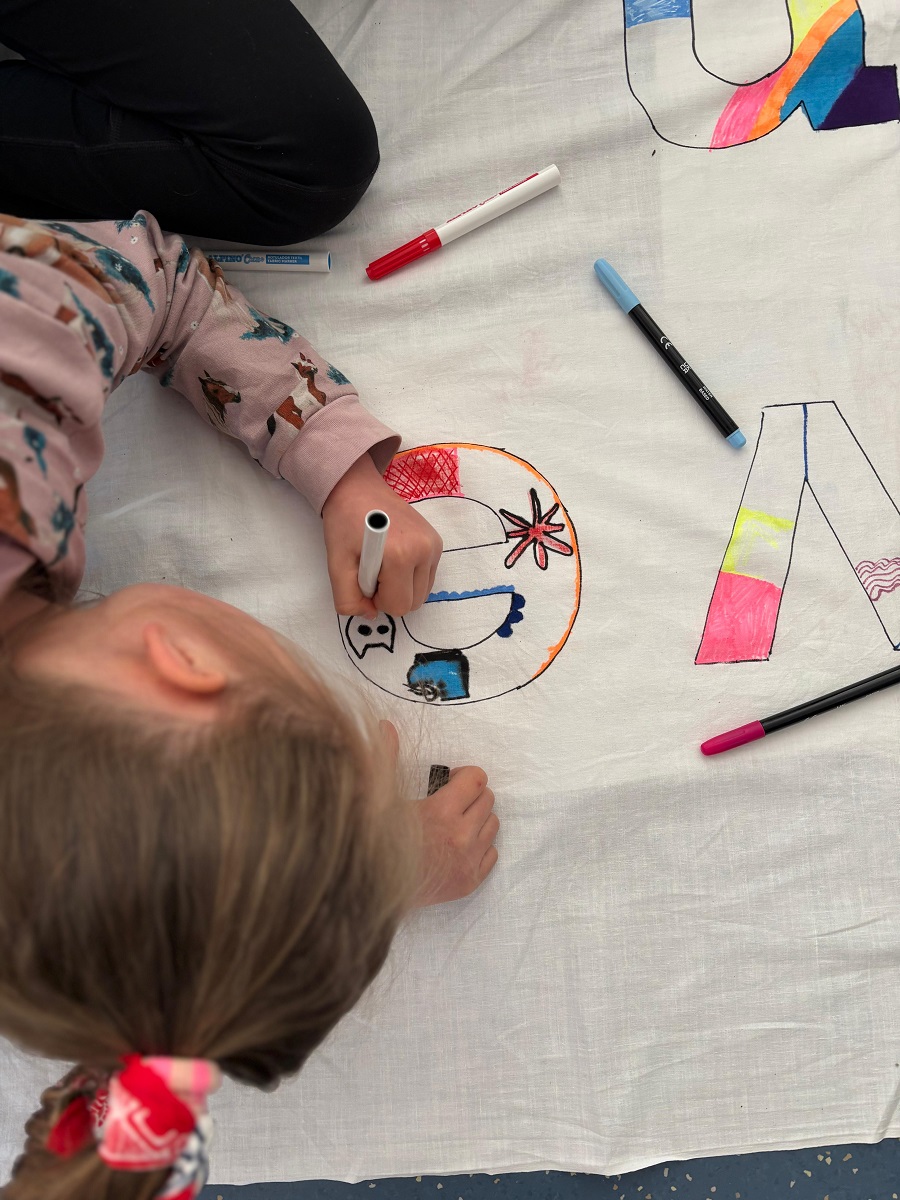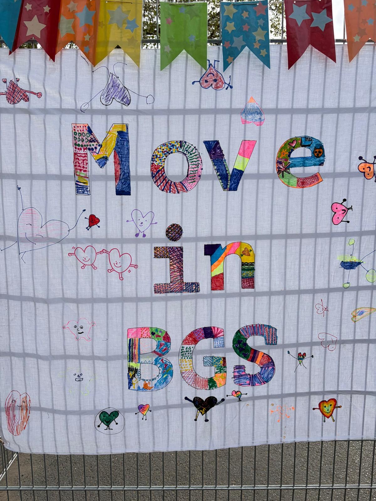 In der restlichen Zeit, wo wir nicht getanzt haben, haben wir uns mit Graffiti beschäftigt und wir haben die Bühnendeko gemacht. Move in School war toll.