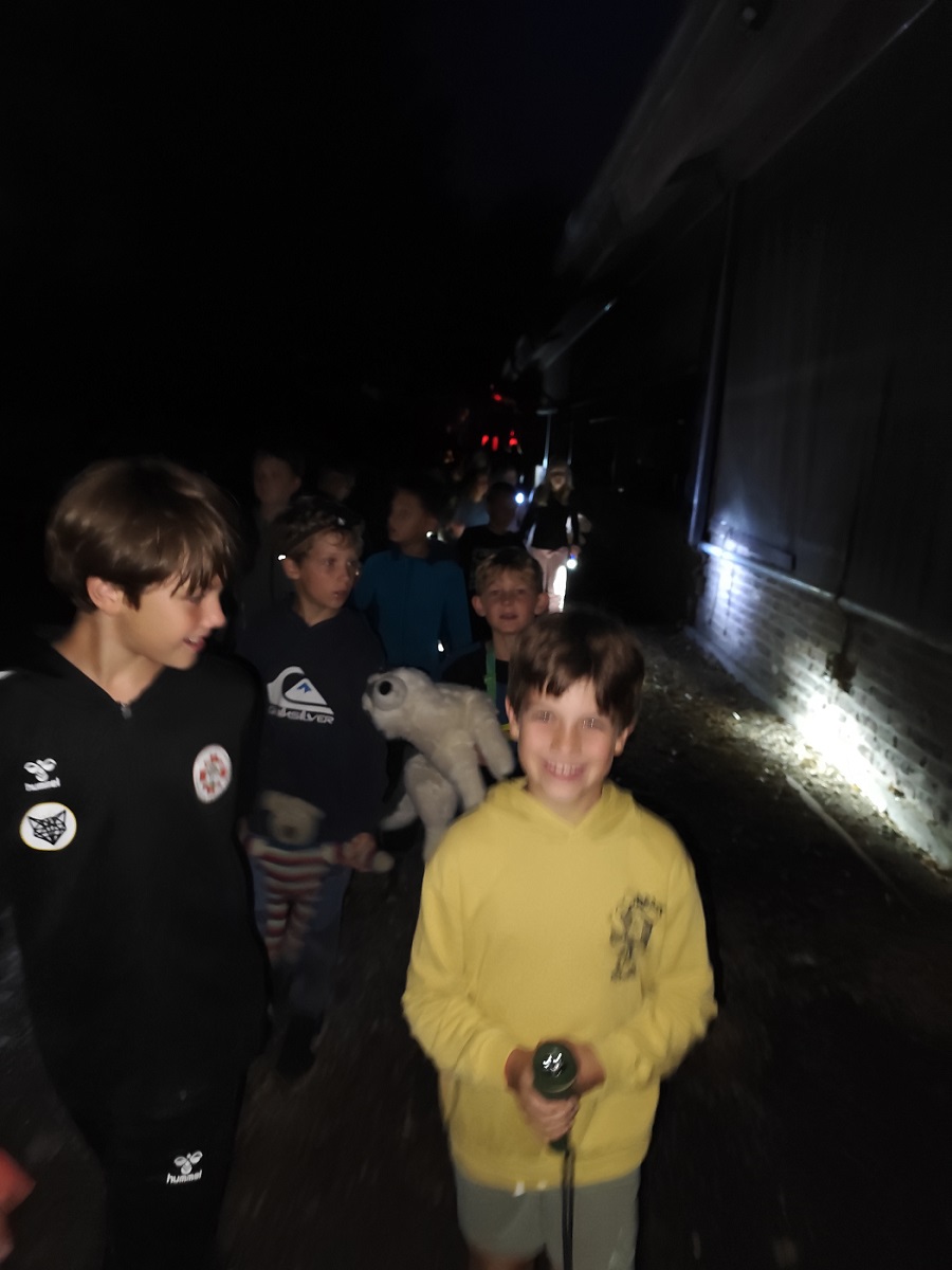 Wir machen noch eine Nachtwanderung, putzen Zähne und dann legen wir uns in unsere Schlafsäcke. Frau Hohl liest noch was vor und dann versuchen alle zu schlafen. Am nächsten Morgen wachen alle um 7 Uhr auf.